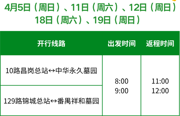“昌岗总站↔中华恒久墓园”“锦诚总站↔番禺和顺墓园”公交便民线。
