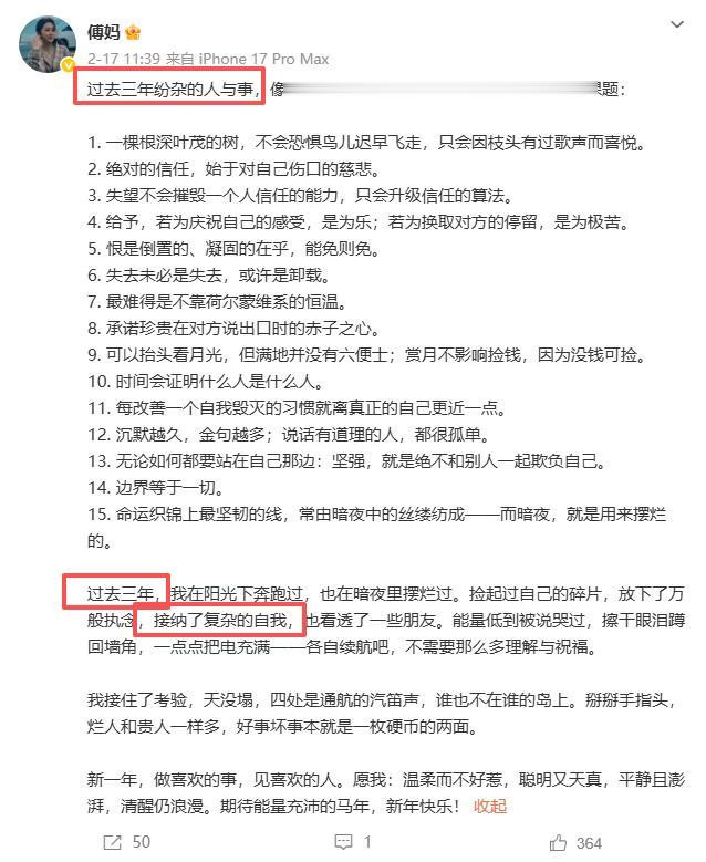 而她发的这个动态也很尽头义,在除了祝愿新年昂然的同期,尽头意外的提到三年前,默示三年前的事,我方断然罗致执念放下自我,