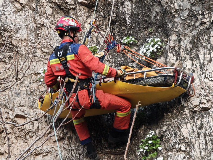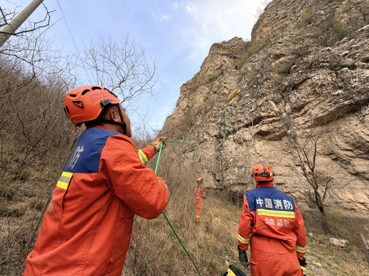 4月12日14时许,门头沟区斋堂消防支援站接到报警,在斋堂镇曙光口村隔邻的野山上,又名男性登山者不测坠崖,人命紧张,急需支援。接警后,消防员立即佩戴绳子、担架及通信装备,火速赶往现场。