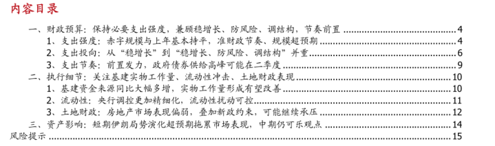 >支拨方进取,从“稳增长”为主转向“稳增长、防风险、调结构”并重,主要有五大支拨处所:1)扩内需无间保持最高优先级;2)“投资于东谈主”进一步强化;3)科技、自主可控与新质出产力爱重程度光显进步;4)传统基建转向“有用投资、要紧神情、什物职责量”,愈加重视结构与效率;5)化债、清欠与增强地方可用财力,仍是财政投向的“隐性主轴”。