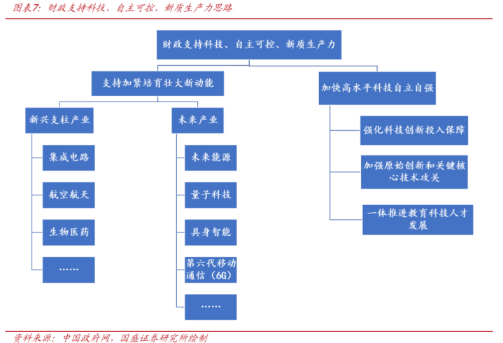 干线三:科技、自主可控与新质出产力爱重程度光显进步。连年来,策略对于科技、自主可控、新质出产力的爱重程度光显进步,财政预算草案中指出要“缓助加紧培植壮大新动能”、“加速高水平科技自立自立”。同期,除“集成电路、航空航天、生物医药”等具体范围外,草案还明确示意要“加强原始立异和重要中枢技巧攻关”,中央本级安排基础推敲支拨增长16.3%、光显高于举座财政支拨增速,指向刻下财政对科技的缓助,不仅重愚弄、也重底层推敲。