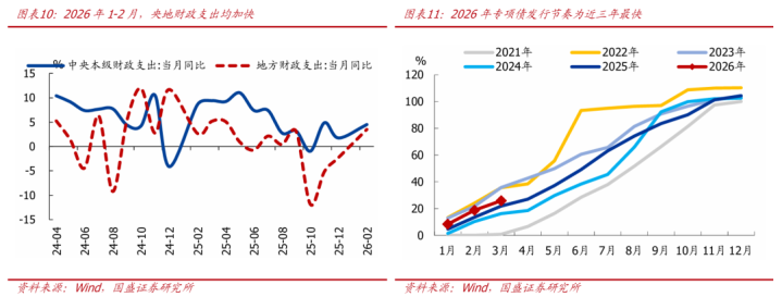>支拨节拍上,策略定调积极,条目财政靠前发力,尽快形成什物职责量,政府债券供给岑岭可能在二季度。