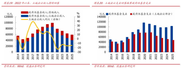 中本性形下,地盘出让收入可能同比下滑8300亿,负担一般财政收入1250亿。如前所述,预算草案预测地方政府性基金收入5.26万亿、与上年基本持平。但研讨到房地产市集偏弱、监管新政等成分影响,推行收入有低于预期的可能性。若是参考2024-2025年地盘出让收入下滑幅度(约15%),相通新政对地盘财政扩展的敛迹,假定2026年地盘出让收入下滑20%,则对应年内地盘财政收入约3.32万亿,较旧年下滑8300亿;对一般财政而言,按照15%的调入来算,可能影响一般财政收入1250亿。