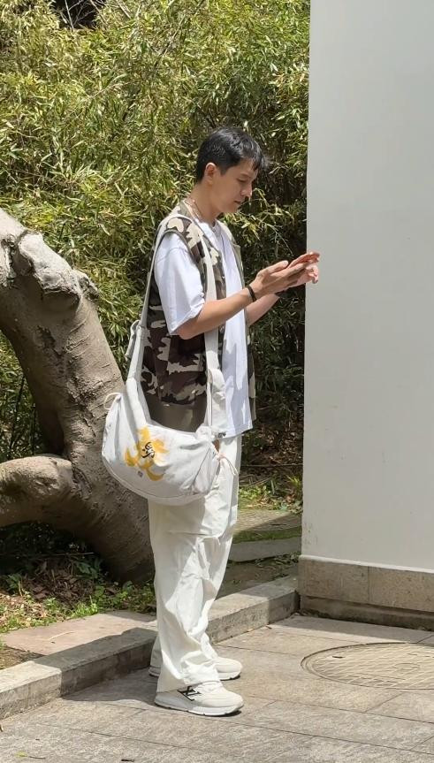 先说说经超,他本日穿了一件白色短袖,外面搭了一件迷彩坎肩,下身配了一条卡其色平静裤,脚上是一对适意的畅通鞋,穿搭简单又知道。