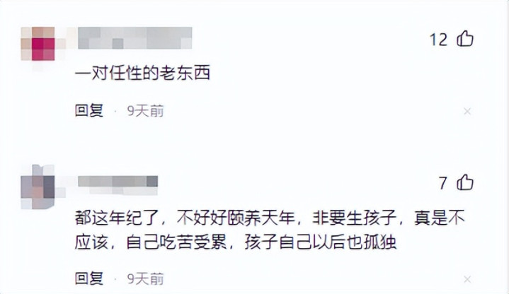其中一部分网友以为,二老的决定太冲动了,一把年齿还冒着生命危急生孩子,不仅是对我方的躯壳不负责,更莫得好好辩论过孩子的将来。