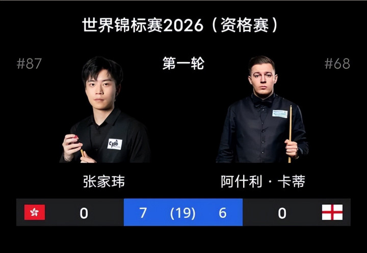 比赛开局,卡蒂先声夺东谈主连下两城,张家玮立时还以神采,打出一波三连胜将比分反超为3-2。两边而后堕入缠斗,上半场适度时,张家玮以4-5暂时落伍。